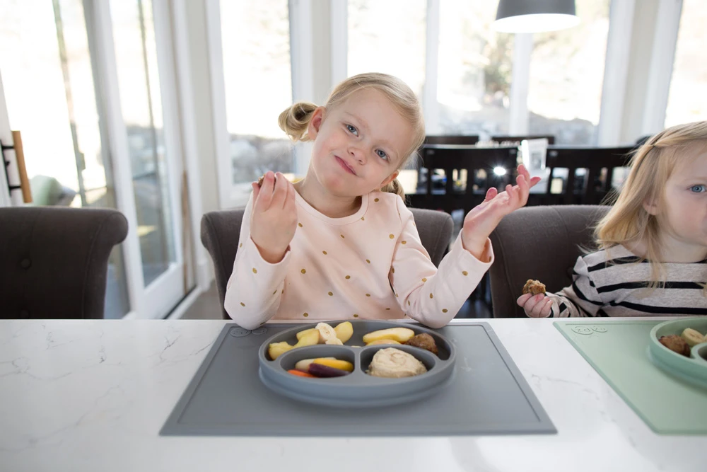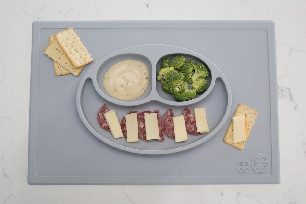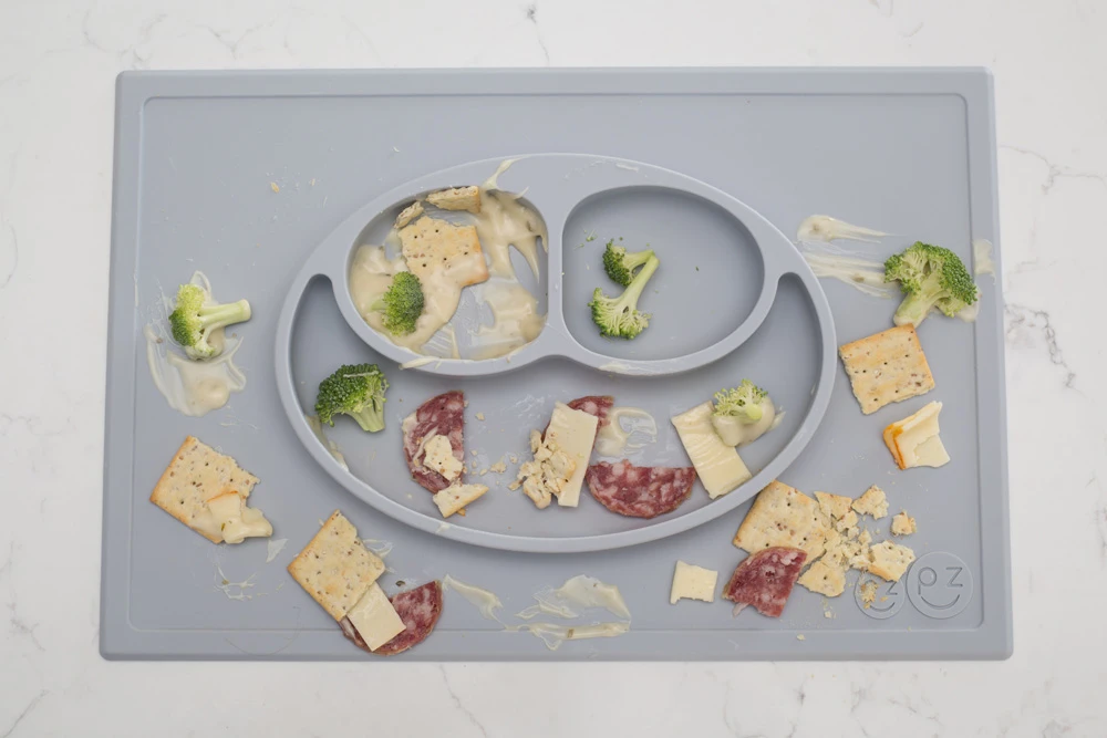 EZPZ a eu l’ingénieuse idée de créer un set de table – assiette tout-en-un, le Happy Mat ÉTAIN !