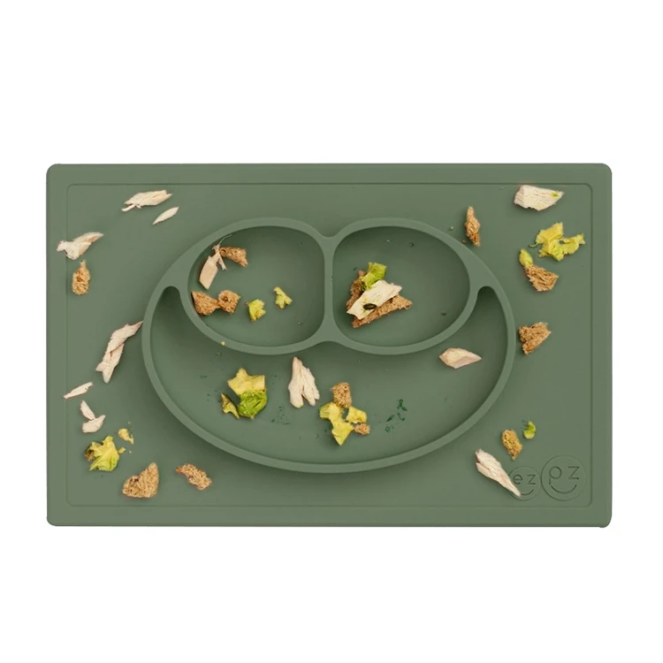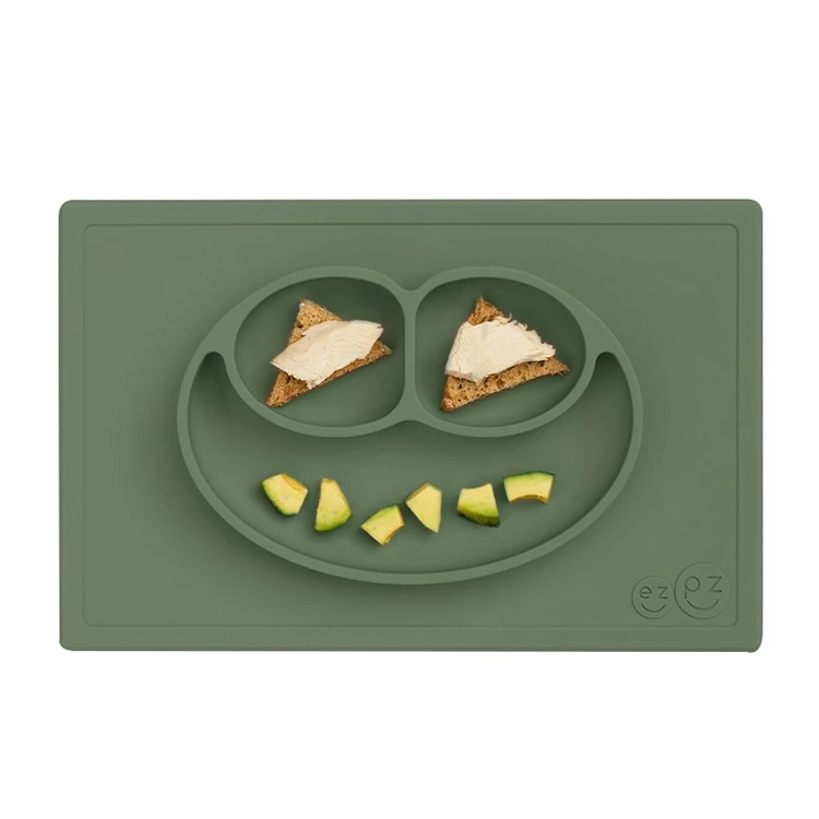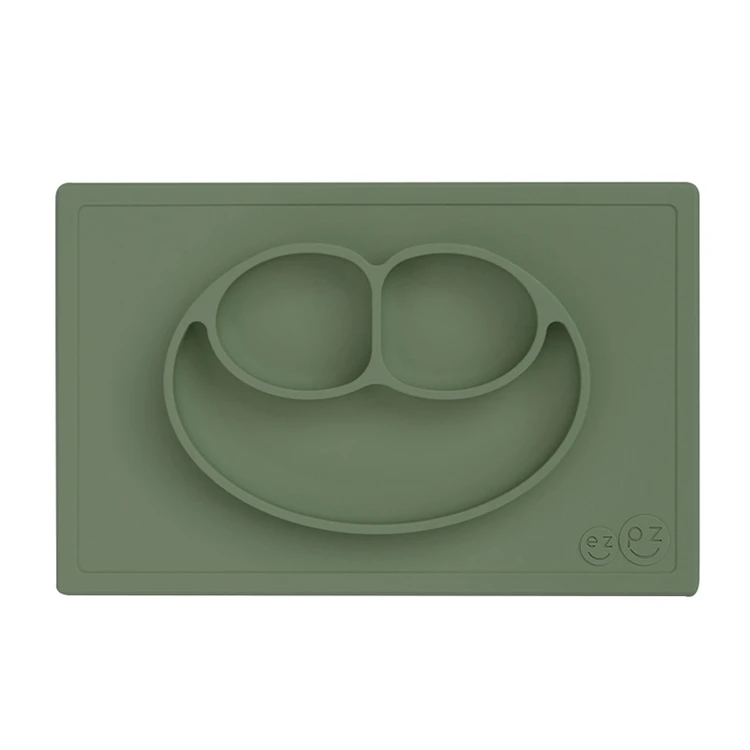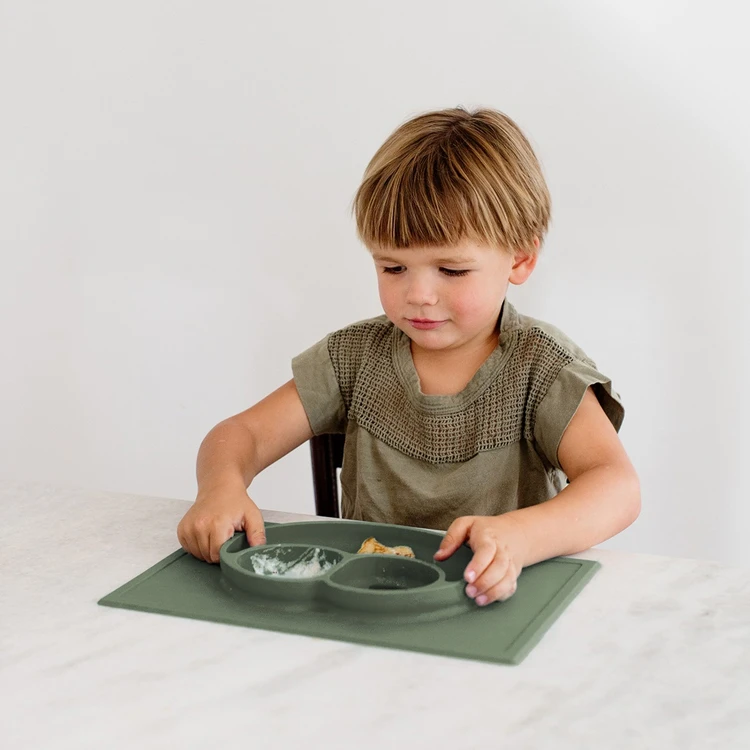 EZPZ a eu l’ingénieuse idée de créer un set de table – assiette tout-en-un, le Happy Mat OLIVE !