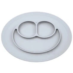 Le Mini Mat ÉTAIN ARGENTÉ est une assiette qui adhère totalement à la table pour éviter que votre enfant renverse son repas.