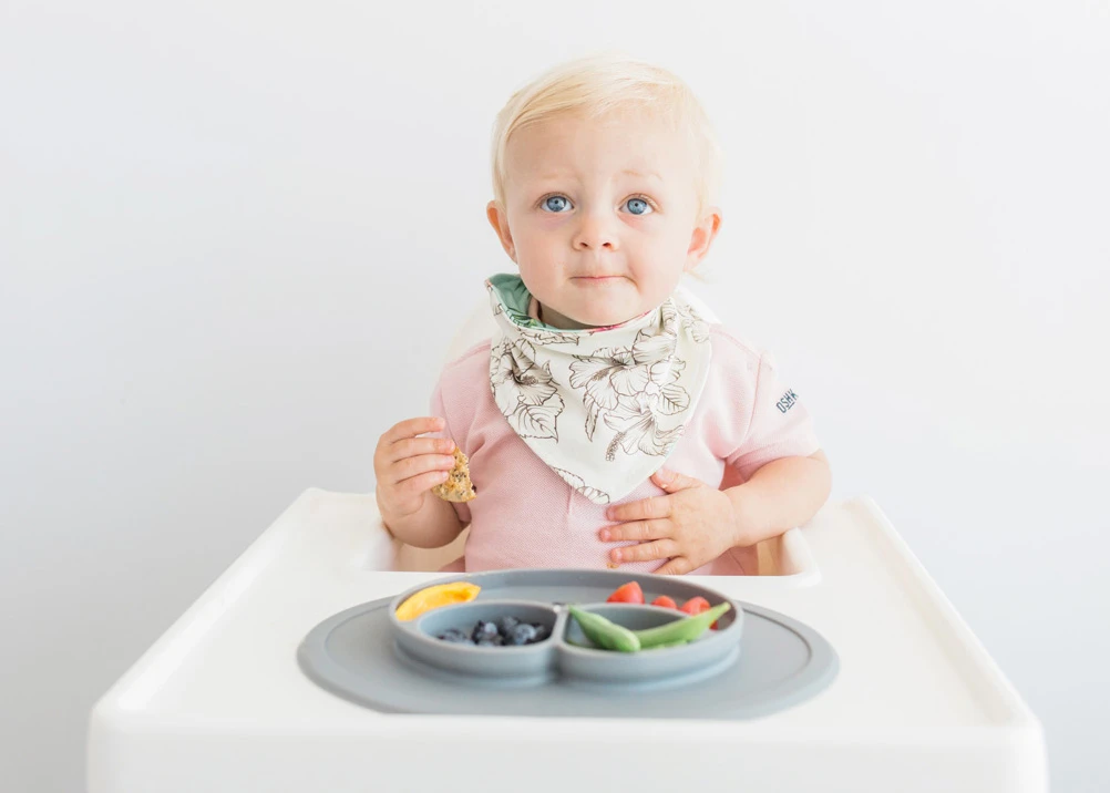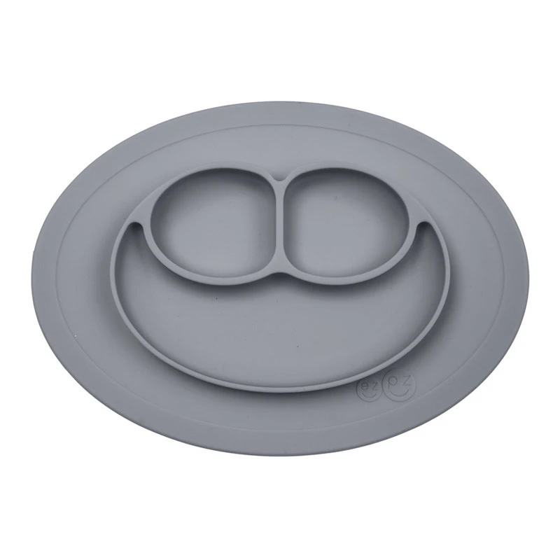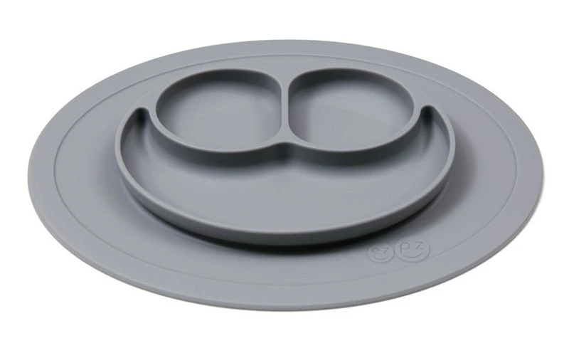 Le Mini Mat GRIS est une assiette qui adhère totalement à la table pour éviter que votre enfant renverse son repas.