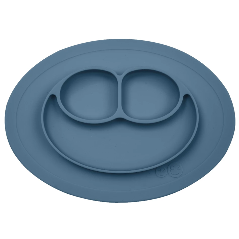 Le Mini Mat INDIGO est une assiette qui adhère totalement à la table pour éviter que votre enfant renverse son repas.