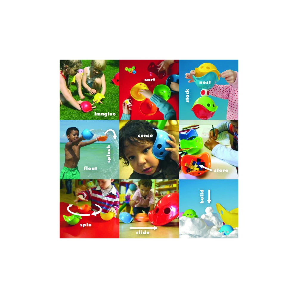 Les Mini Bilibo sont de « drôles » de coquille qui s’utilisent dans l’eau, pour jouer dans le sable, la neige. Votre enfant pourra les empiler, les emboîter, s’en servir comme instrument de percussion…