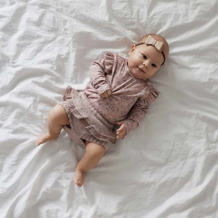 Ses douces couleurs, ses imprimés fleuris et ses délicats volants habilleront joliement votre bébé dès la naissance.