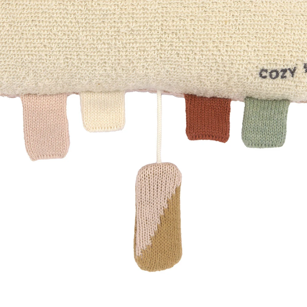 Grâce à son attache en tissu, vous pourrez l’accrocher à la poussette, au lit, au siège-auto…
