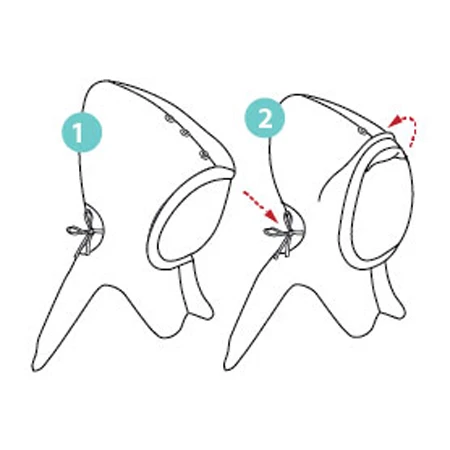 Le lien dans le coup ainsi que les pressions sur le dessus de la tête vous permettent de régler la taille de la cagoule et de l’ajuster au mieux à votre enfant.