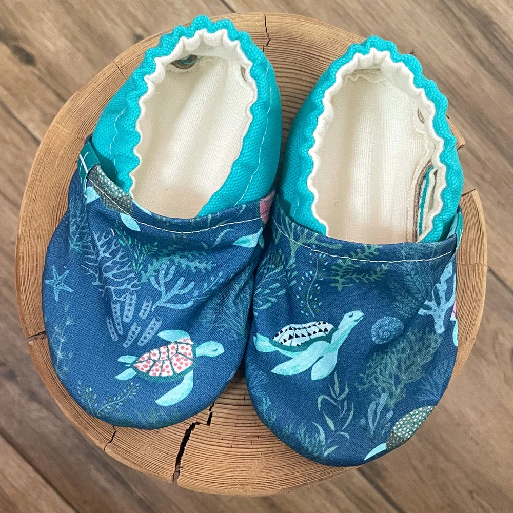 Découvrez les chaussons bébé Titot Blue Lagoon : doux et colorés.