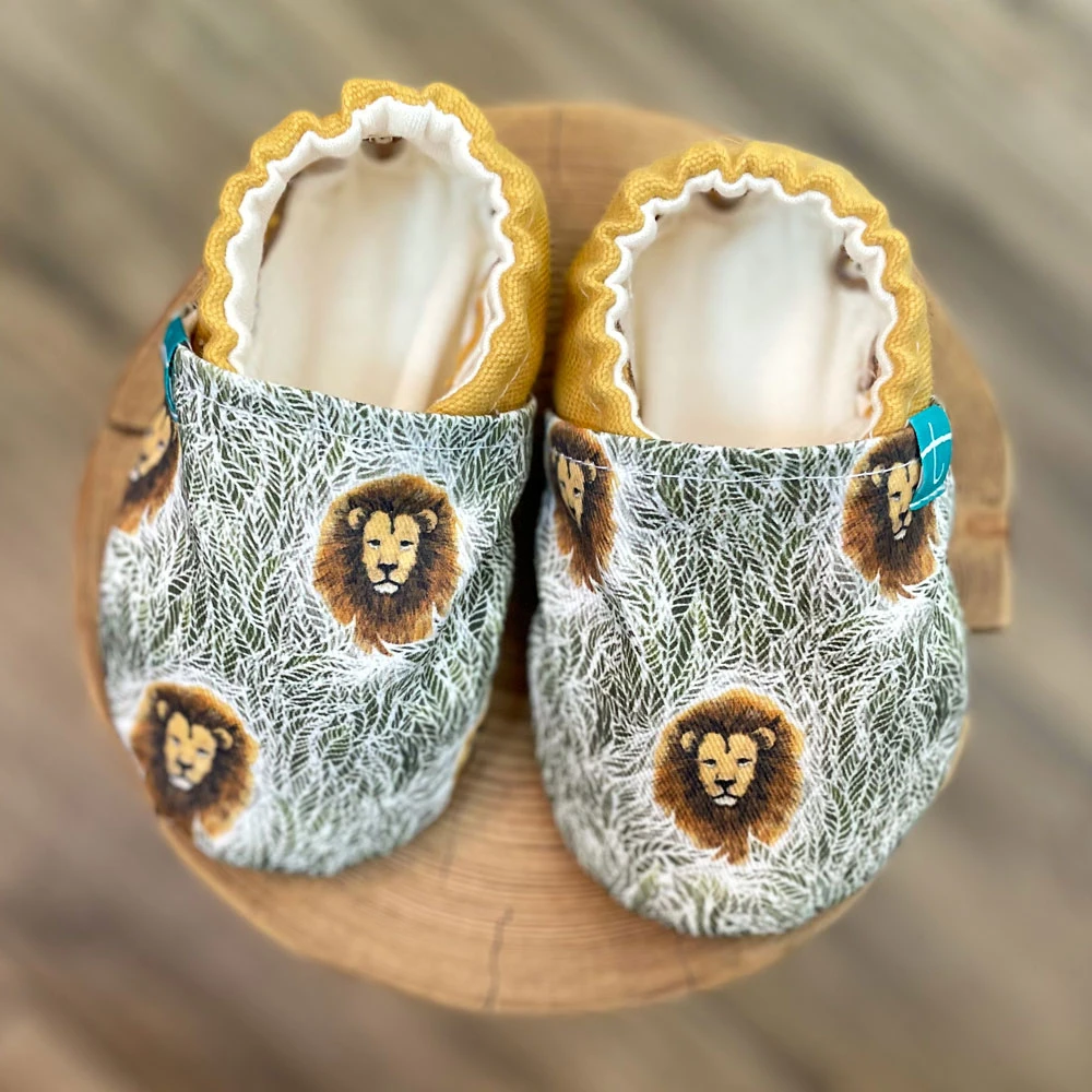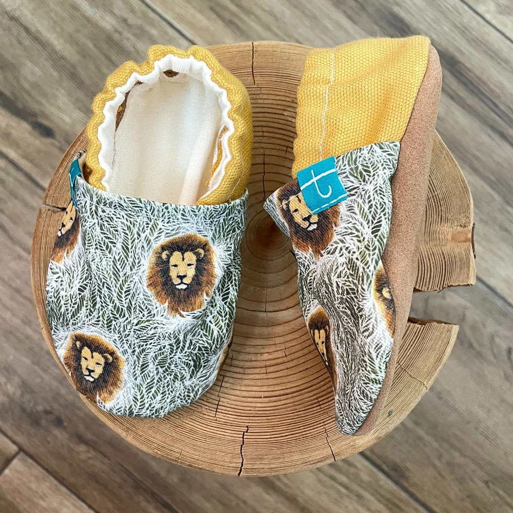 Découvrez les chaussons bébé Titot Gold Lion : élégants, doux et colorés.