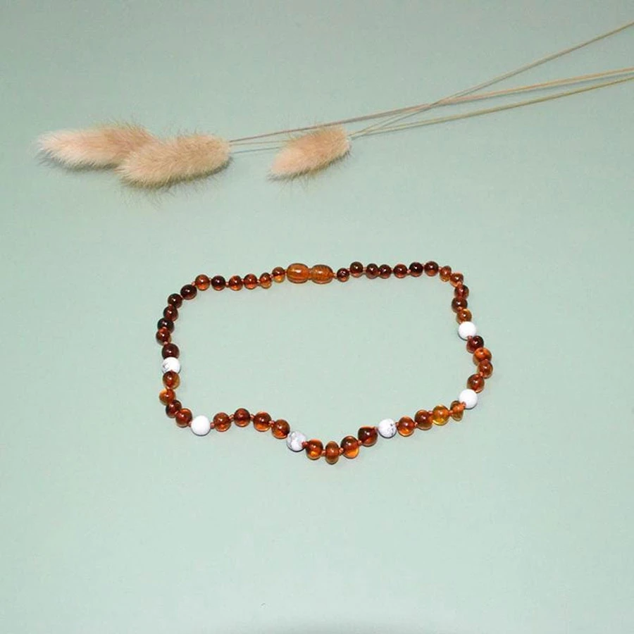 Descriptif du produit : Collier d’Ambre Cognac et Pierre naturelle Bébé