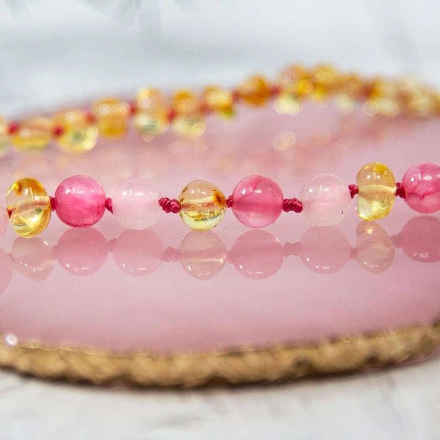 Descriptif du produit : Collier d’Ambre Lemon et Pierre naturelle Bébé