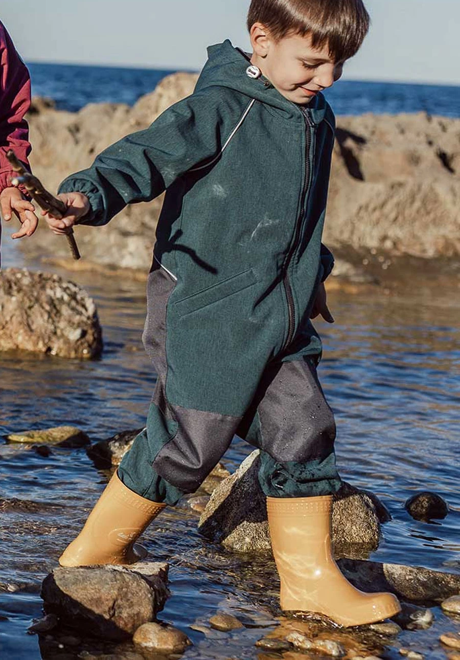 La combinaison en Softshell Fun2bemum est déperlante, respirante et coupe-vent et permet aux enfants de jouer sans se soucier de se salir, de se mouiller ou d’abîmer leurs vêtements pour le plus grand bonheur des parents.