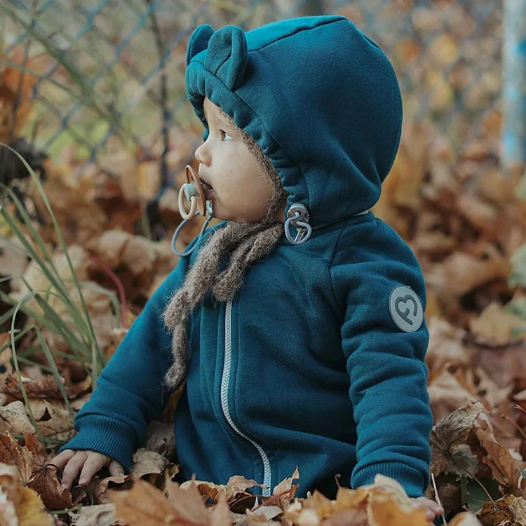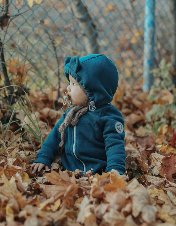 La capuche est amovible et munie d’un lien pour vous permettre de la régler et de l’ajuster au mieux à votre enfant.