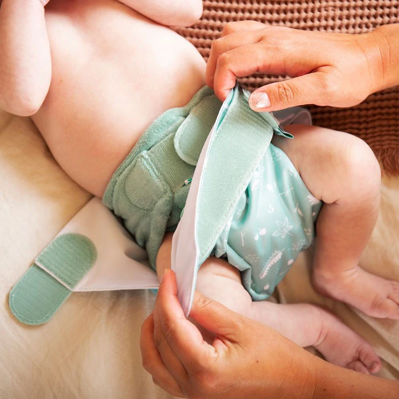 La couche est composée de bambou, un tissu anti-bactérien, souple et extensible. Le noyau absorbant en microfibre permet une absorption rapide et le booster en bambou stretch permet une double absorption (inclus).