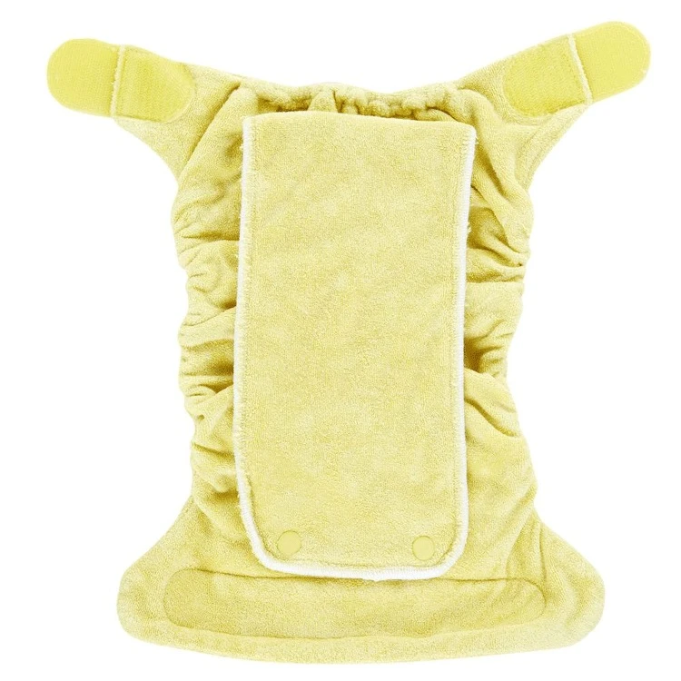 La couche est composée de bambou, un tissu anti-bactérien, souple et extensible. Le noyau absorbant en microfibre permet une absorption rapide et le booster en bambou stretch permet une double absorption (inclus).