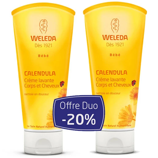 La Crème lavante Corps et Cheveux Weleda convient à la toilette quotidienne du bébé et du petit enfant, en remplacement du savon. Elle produit une mousse fine qui se rince à l’eau.