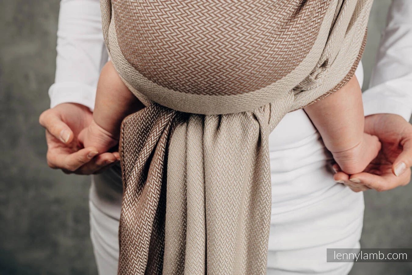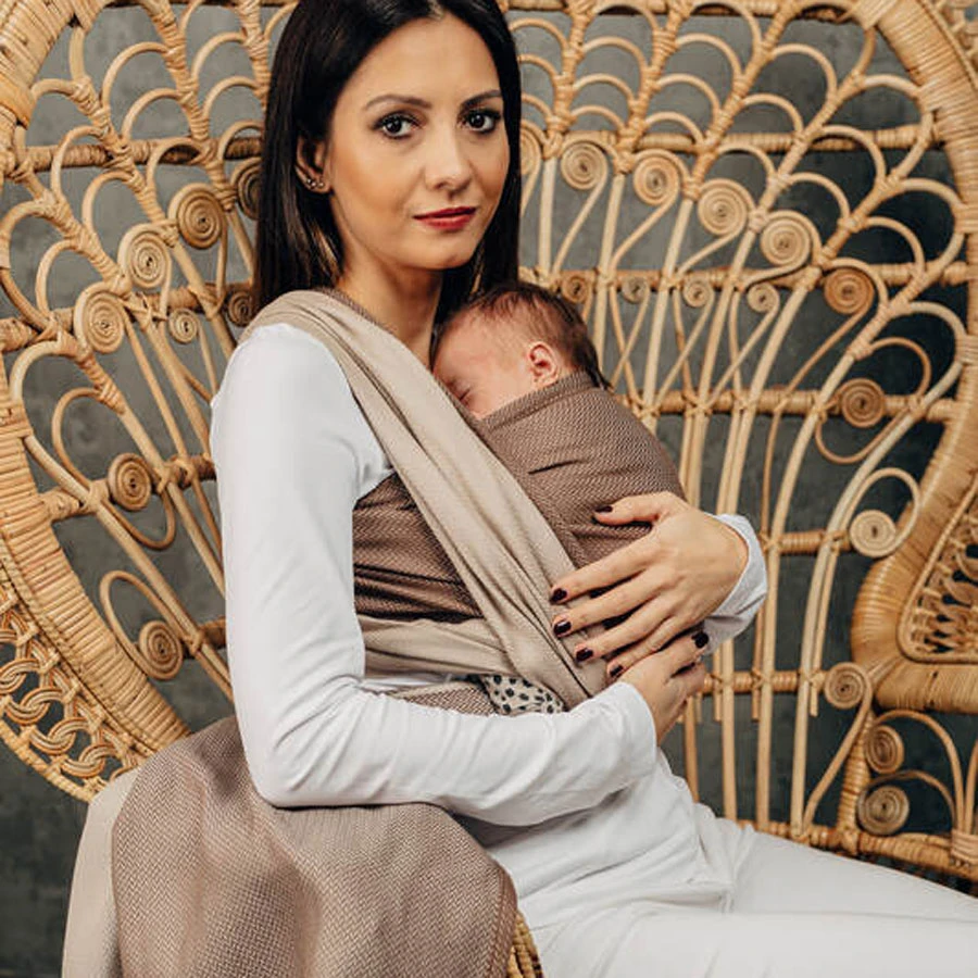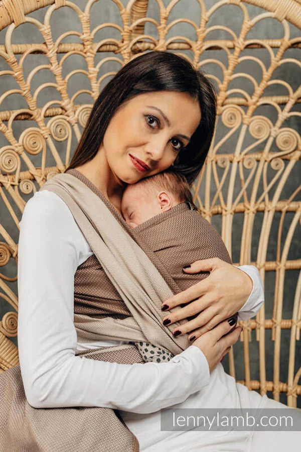 Echarpe de Portage LennyLamb modèle LITTLE HERRINGBONE CAFFE LATTE : Pour un portage en toute sécurité !