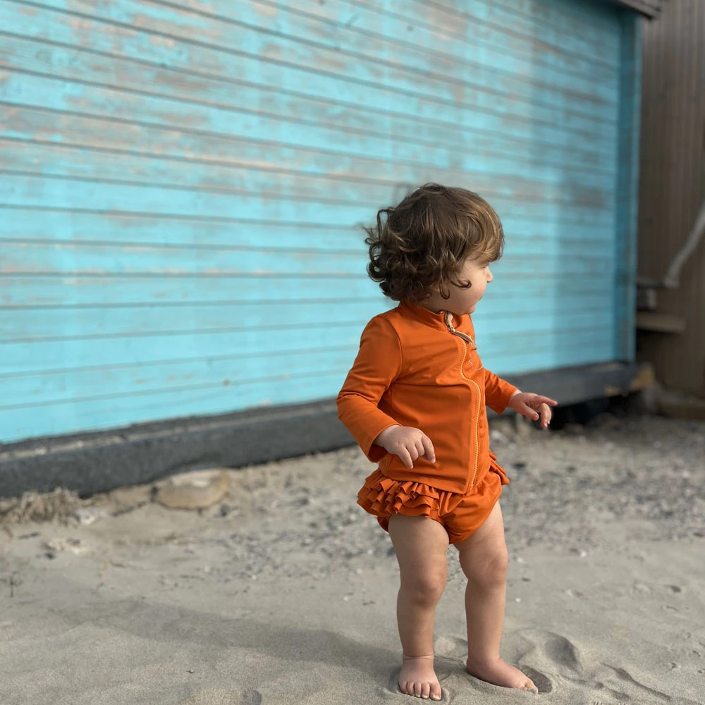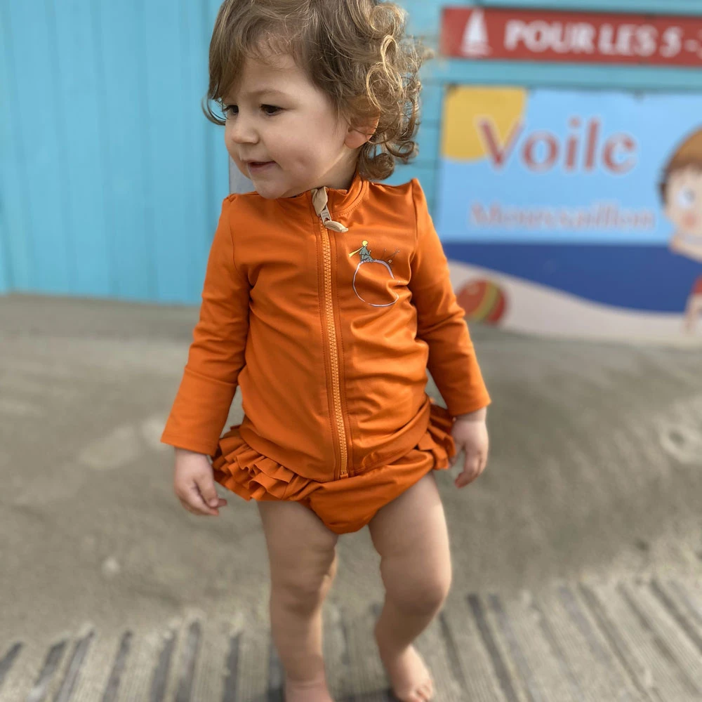 Un maillot couche élaboré dans un tissu européen anti-UV certifié UPF 50+ et Oeko-Tex !