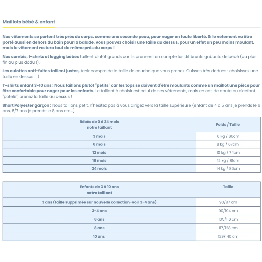 La marque Les petits Protégés utilise des tissus doux, résistants au chlore et au sel, respirants et séchant vite !