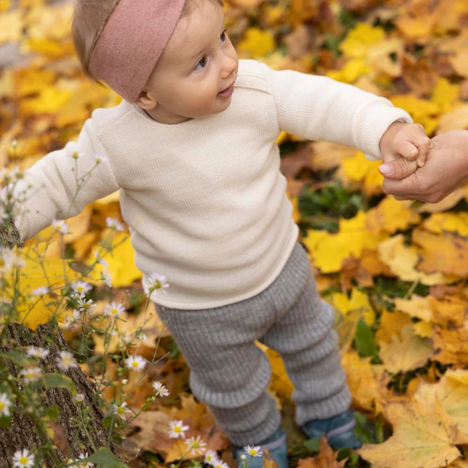 Les Leggings en pure laine mérinos Disana permettent à votre enfant de garder ses jambes bien au chaud.