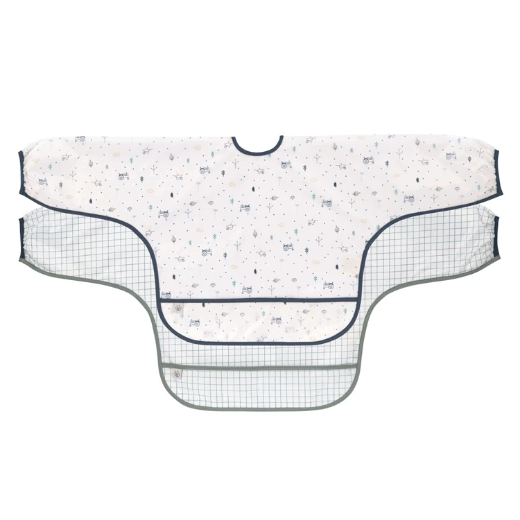 Ces bavoirs manches longues 6-24 mois Lassïg sont en tissu imperméable ultra léger et ils se nettoient très vite avec une éponge.
