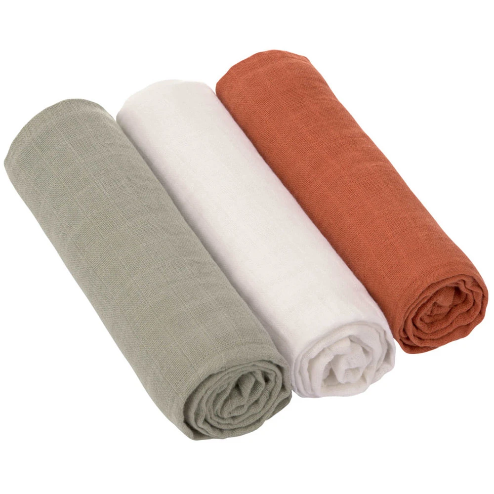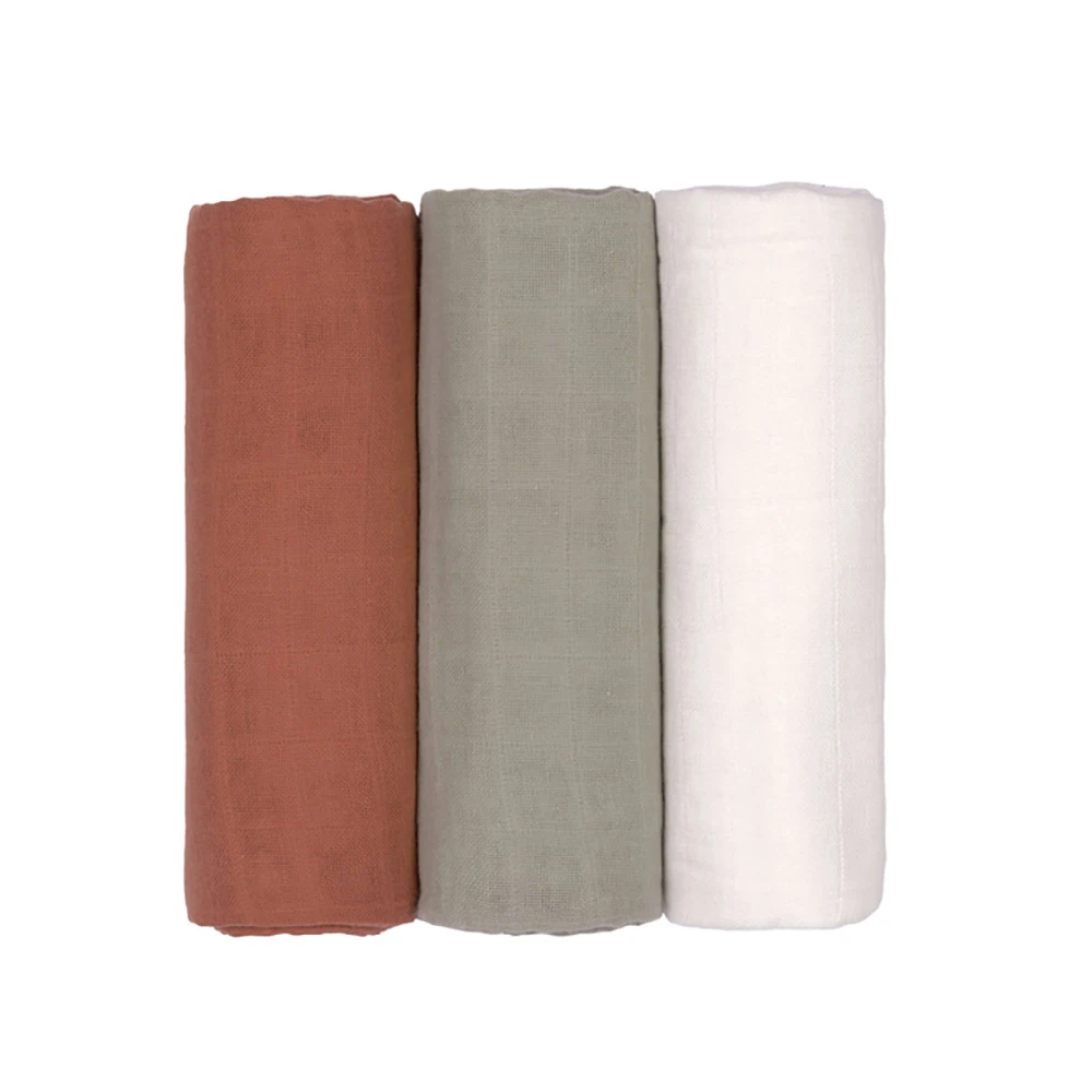 Descriptif du produit : Lot de 3 langes en mousseline Rouille