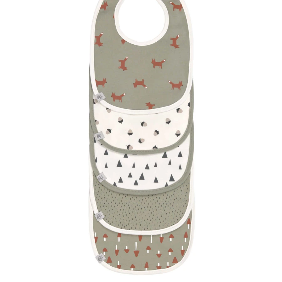 Descriptif du produit : Lot de 5 bavoirs en éponge imperméable 3-18 mois Little Forest Renard