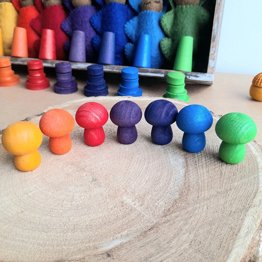 Descriptif du produit : Mini champignons en bois Rainbow – set de 7