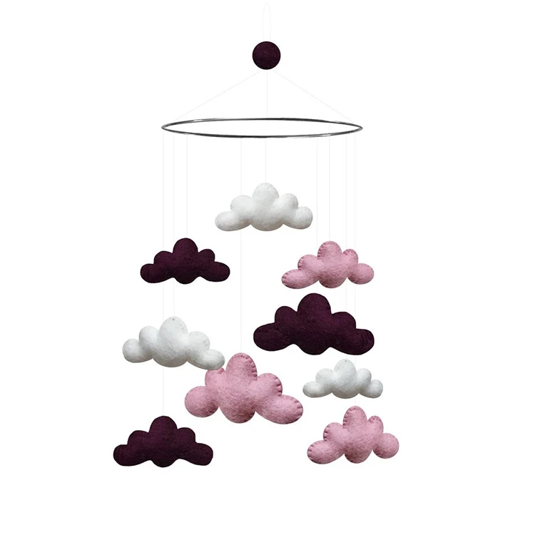 Descriptif du produit : Mobile en laine feutrée Nuages – Dark pink