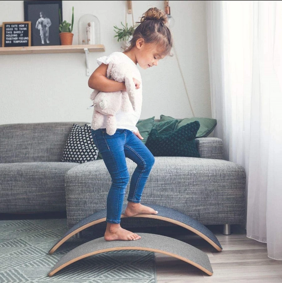 Descriptif du produit : Planche d’équilibre Starter en bois et feutre Gris
