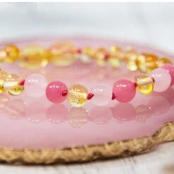 Bracelet D’Ambre Cognac Et Pierre Naturelle Bébé IRREVERSIBLE BIJOUX