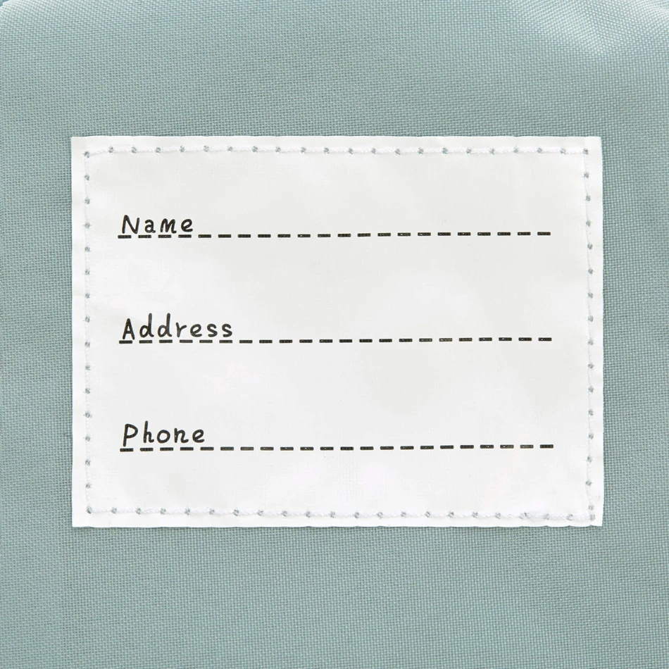 – Une étiquette pour écrire le nom à l’intérieur du sac.