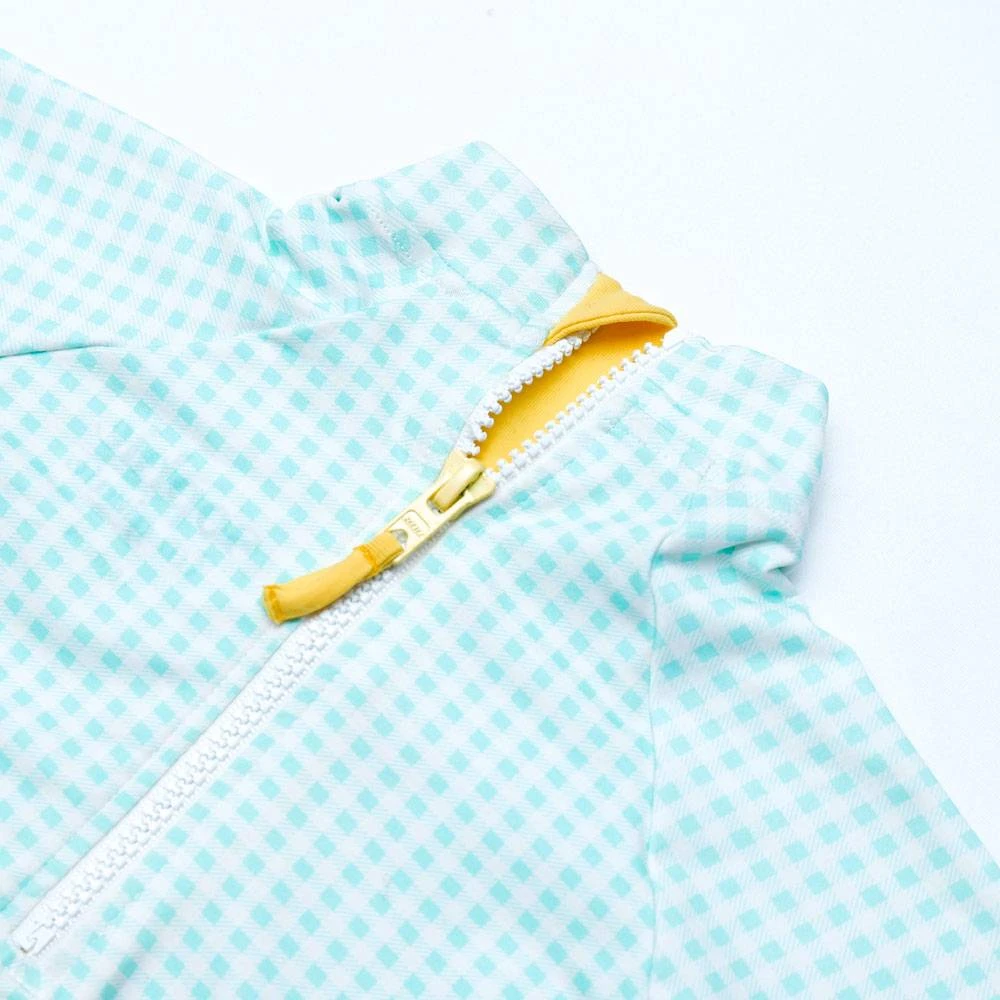 Une combinaison élaborée dans un tissu européen anti-UV certifié UPF 50+ et Oeko-Tex !