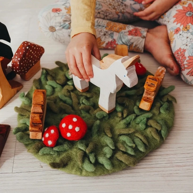 Comment se sevir de ce tapus de jeu Herbes et champignons en laine feutrée ?