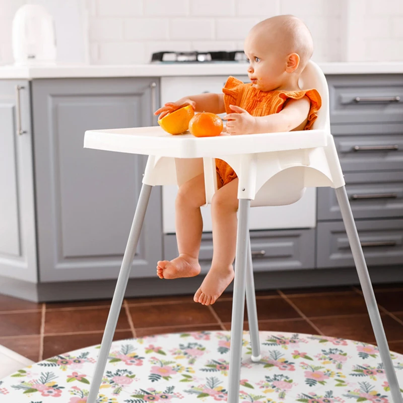 Ce tapis peut aussi bien être installé en tapis sous la chaise haute lors des repas, que sur la table lors des activités manuelles.