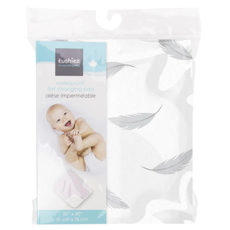 Ce tapis nomade imperméable Grey Feathers vous suivra partout pour faciliter le change de bébé !