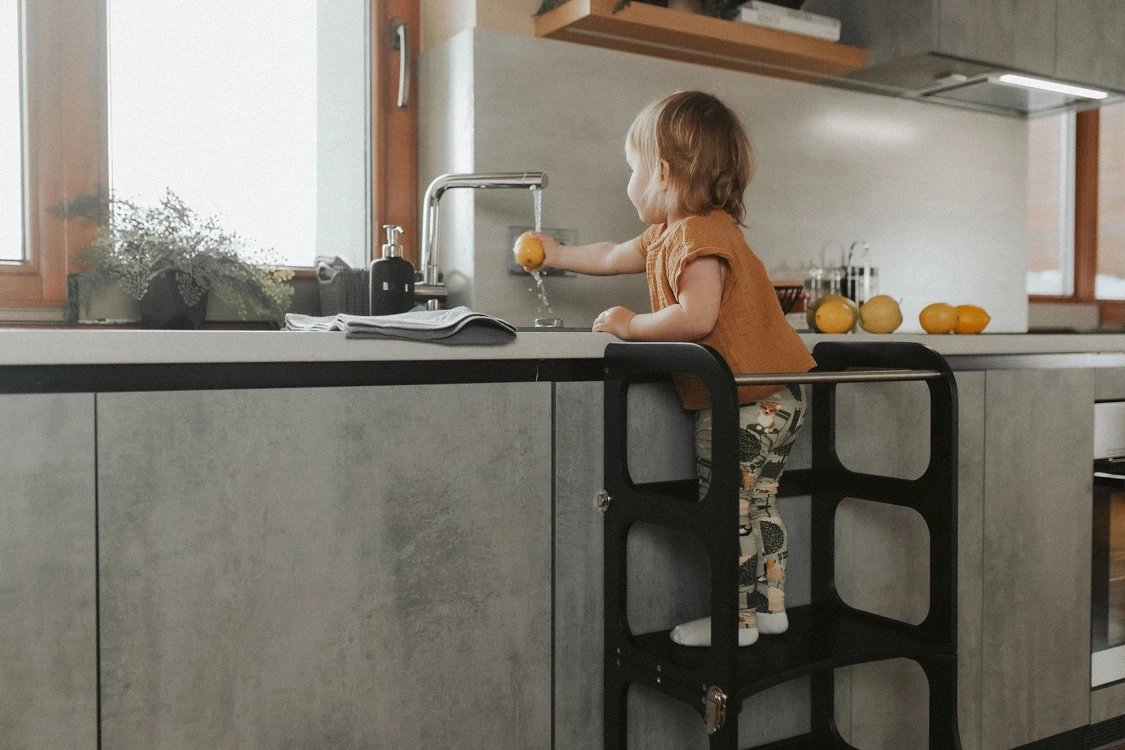 Cette tour d’observation permet à votre enfant d’atteindre en toute sécurité les surfaces en hauteur telles que le plan de travail de la cuisine ou l’évier.
